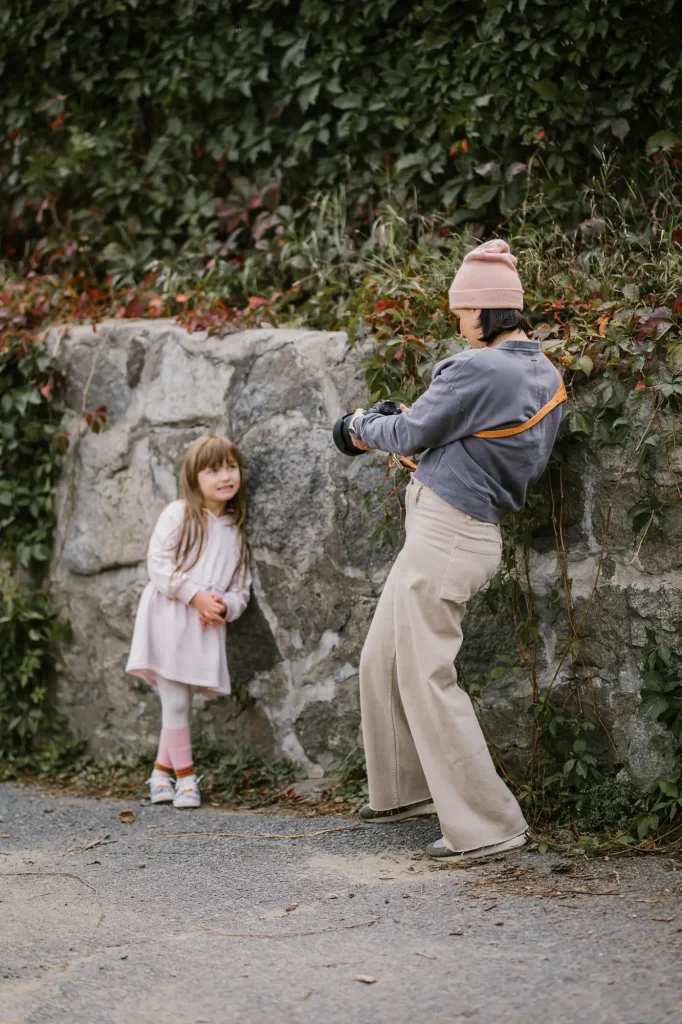 Je photographie les enfants dehors.